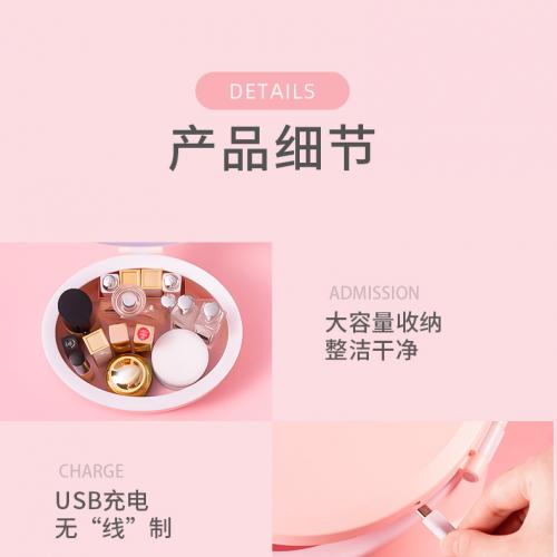 台式LED化妆镜子带灯日光桌面梳妆美妆收